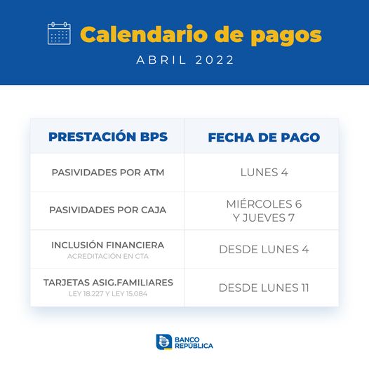 Compartimos el calendario de pagos de BPS en Tu Banco para abril 2022.