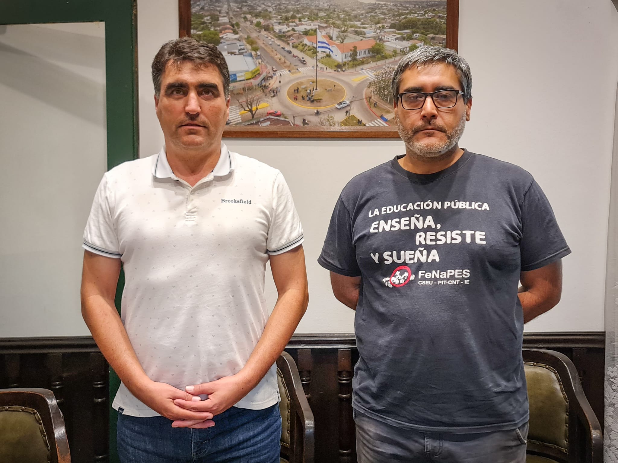 El intendente de Salto, Andrés Lima junto a Cristian Trindade, en representación de la productora Artemisa, invitaron a participar de este evento con la presencia estelar de Buitres, más 4 bandas locales.