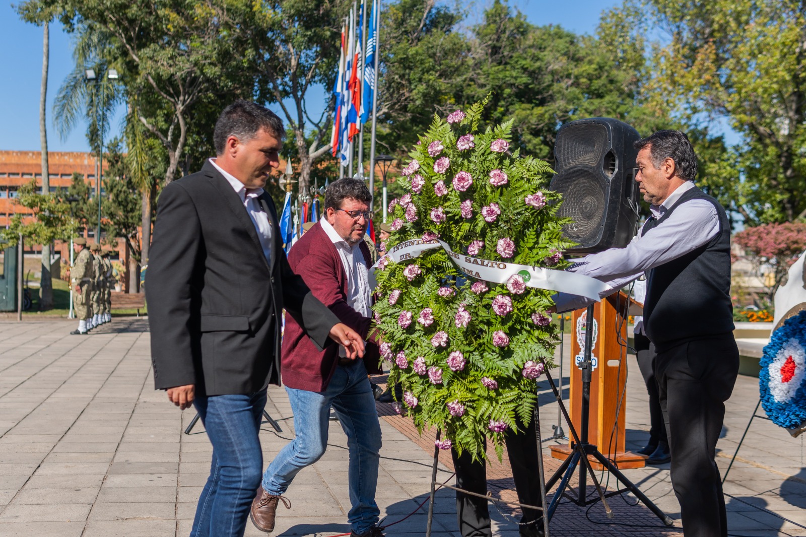 Luego de entonar estrofas del Himno Nacional uruguayo y estrofas del Himno a Salto, se procedió a la colocación de ofrendas florales al pie de los bustos del Gral. Manuiel Oribe y del Gral. Juan Antonio Lavalleja.