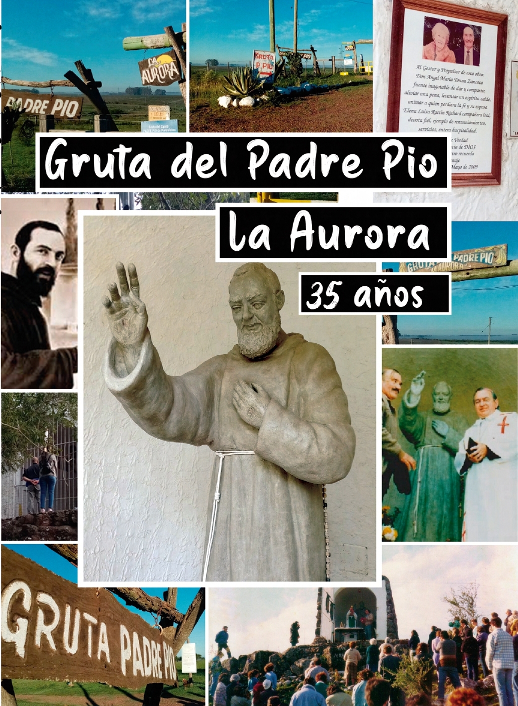 Gruta del Padre Pío – La Aurora – 35 años, es el nombre del trabajo que por estos días presenta el periodista salteño Eduardo Rodríguez, quien desde hace varios años se dedica a investigar sobre la devoción que se expresa en el litoral uruguayo hacia el santo italiano. El autor explica que la aparición de este nuevo título “es una evidente manifestación de devoción así como un humilde gesto de gratitud a Dios, a la particularmente intensa presencia del Padre Pío en esta zona y a la amorosa misión de la familia Tonna Rattín, los propietarios de La Aurora, que desde hace 35 años generosamente comparten su casa con millares de peregrinos, haciendo el bien de una manera inconmensurable”.