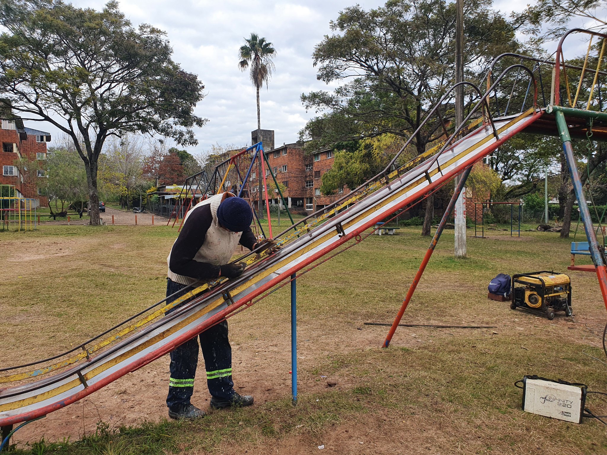 El director de Servicios Públicos Mario Furtado, agregó que los trabajos que se vienen realizando, incluyen un cercado de madera, pintura, colocación de más bancos y mesas, más la recuperación total de los juegos.