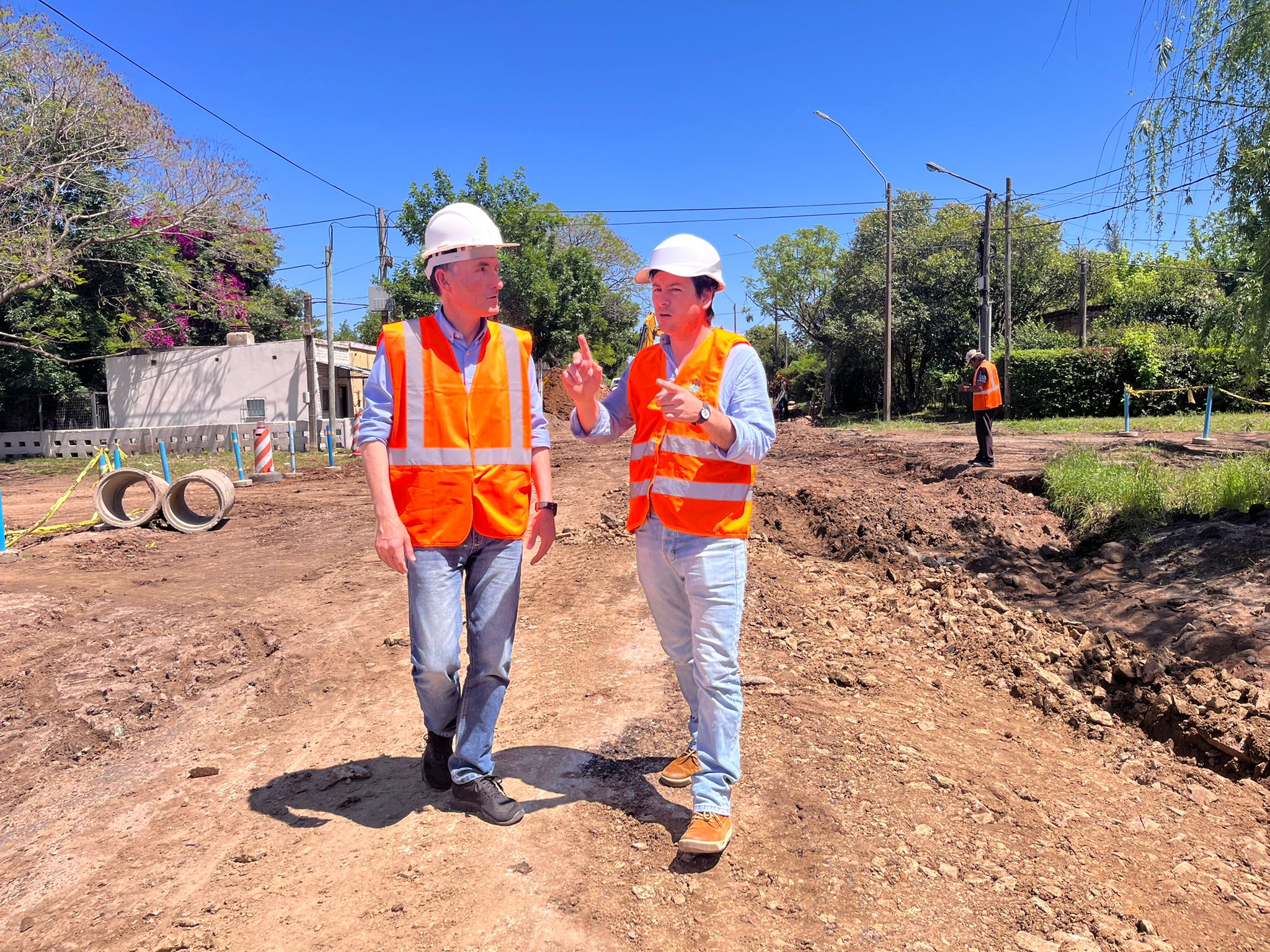 Luego, Lima y Machado se trasladaron hasta barrio Artigas para caminar y dialogar con funcionarios, apreciar los trabajos de entubado sobre calle Instrucciones del Año Xlll. Allí se está realizando una intervención muy importante en la búsqueda de una solución de los pluviales.