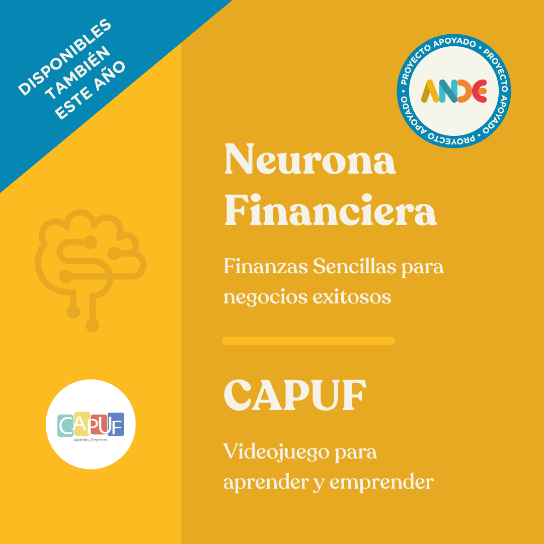 Por otro lado, el videojuego CAPUF, da la posibilidad de aprender a manejar las finanzas de un emprendimiento jugando. Se trata de un videojuego de rol donde hay que tomar decisiones financieras/operativas con la finalidad que el emprendimiento crezca. Se puede descargar de forma gratuita en Google Play y APP Store.