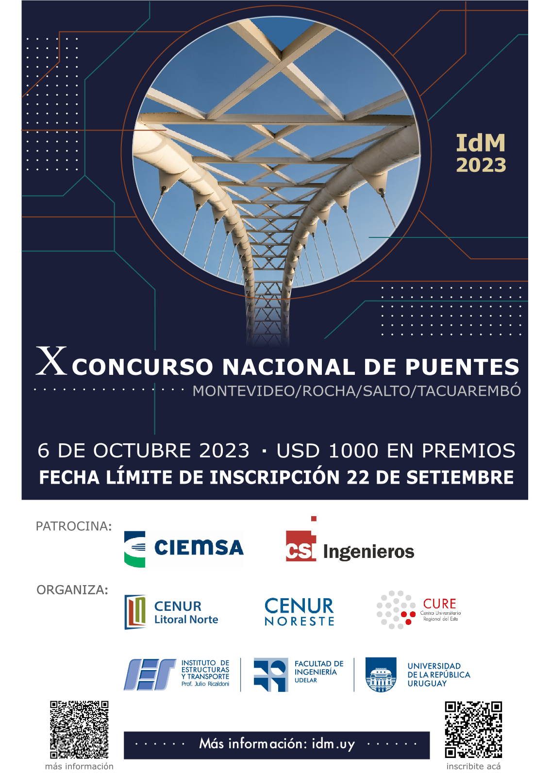 La 10° edición del Concurso Nacional de Puentes se llevará a cabo el próximo viernes 6 de Octubre de 2023 en el piso 0 de la sede Salto de la Universidad de la República, Cenur Litoral Norte.