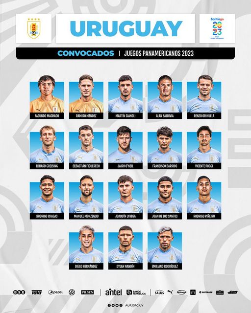 El chileno Diego Reyes, entrenador de la selección sub-23 de Uruguay, dio a conocer la nómina de 18 jugadores que conformarán el plantel que nos representará en los Juegos Panamericanos de Santiago de Chile el próximo mes de octubre.