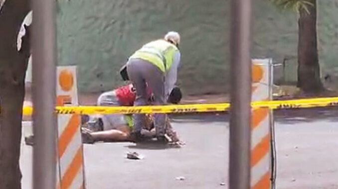 Un inspector de tránsito fue agredido físicamente mientras con una compañera realizaba un corte de calle en Carlos Albo y Bolívar, cuando personal de Vialidad trabajaba en el tendido de carpeta asfáltica.