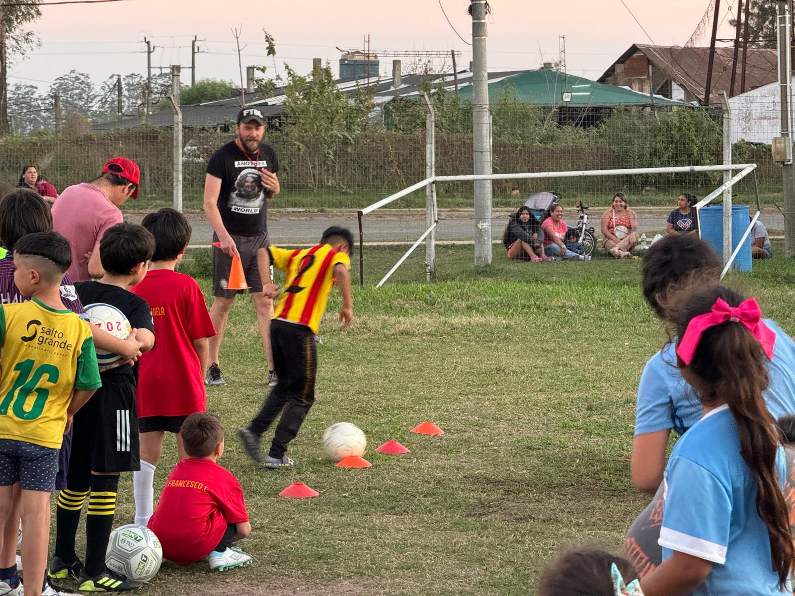 La Escuelita de Fútbol de la Intendencia de Salto, dirigida por Elbio “El Pato” Conti, está funcionando en las instalaciones de “El Kincho” del barrio Artigas. Esta iniciativa gratuita ha logrado convocar a más de 80 niñas y niños, quienes asisten a las actividades los lunes, miércoles y viernes a partir de las 17:15. Conti organiza el trabajo en dos grupos, según las edades de los participantes.