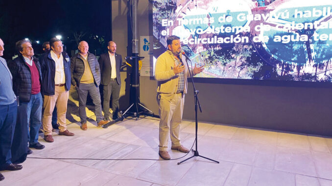 “Ya no ocurrirá que ‘no vamos a Guaviyú porque en verano están muy calientes las piscinas’; o ‘no vamos a Guaviyú porque en invierno están muy frías’. La gente va a venir en verano, en invierno, en primavera, en otoño, los días de lluvia, los días de calor. Sea cual sea la época del año, se encontrará un centro termal diseñado y ejecutado para la satisfacción de todos los usuarios”, aseguró el intendente Nicolás Olivera al inaugurar la usina de calentamiento de agua, cuyo centro es una bomba de calor capaz de calentar hasta dos millones de litros de agua termal por día. “No estamos inaugurando una bomba de calor, estamos inaugurando más inteligencia que cosas tangibles, puestas al servicio de un recurso que genera divisas genuinas en el departamento, como es el turismo”, agregó Olivera. Entre las autoridades presentes, además del intendente, estaban el subsecretario de Industria, Walter Verri, el secretario general de la Intendencia, Fermín Farinha, el director de Turismo, José Manuel Galván, y el exintendente Walter Belvisi. Olivera subrayó que “este centro termal hace tres años y medio daba vergüenza. Suena feo, pero daba vergüenza. No éramos capaces de decirle a la gente que usara un baño, porque daba vergüenza entrar acá. Se cambió la vergüenza por el orgullo de tener, creo, el mejor centro termal del país, donde estamos inaugurando una tecnología de primer nivel, con mayor y mejor eficiencia energética, puesta al servicio del turismo”.