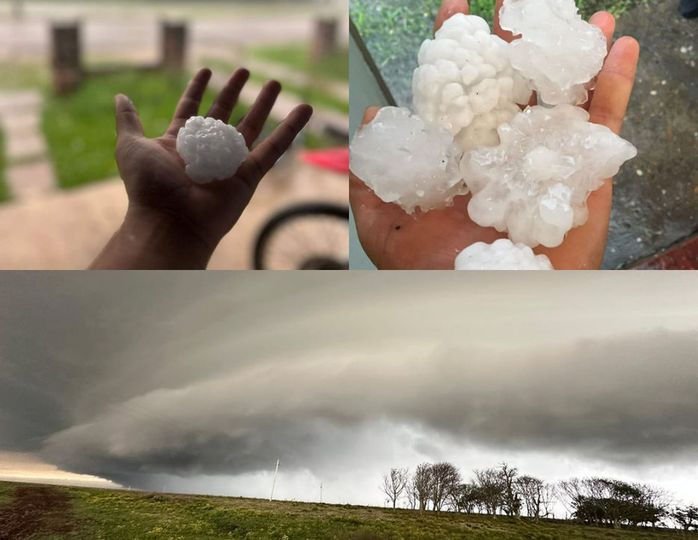 En los videos difundidos en redes sociales se puede ver cómo las piedras de hielo fueron acompañadas de viento y de lluvia. Además, según los posteos de Matías Mederos, se calificó el fenómeno como “destructivo”.