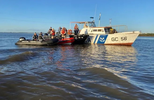 La búsqueda incluye un perro rastreador abordo de la embarcación de la Prefectura, que rastrilla la zona con buzos, además de hacerlo también por aire, en una aeronave de la Aviación Naval.