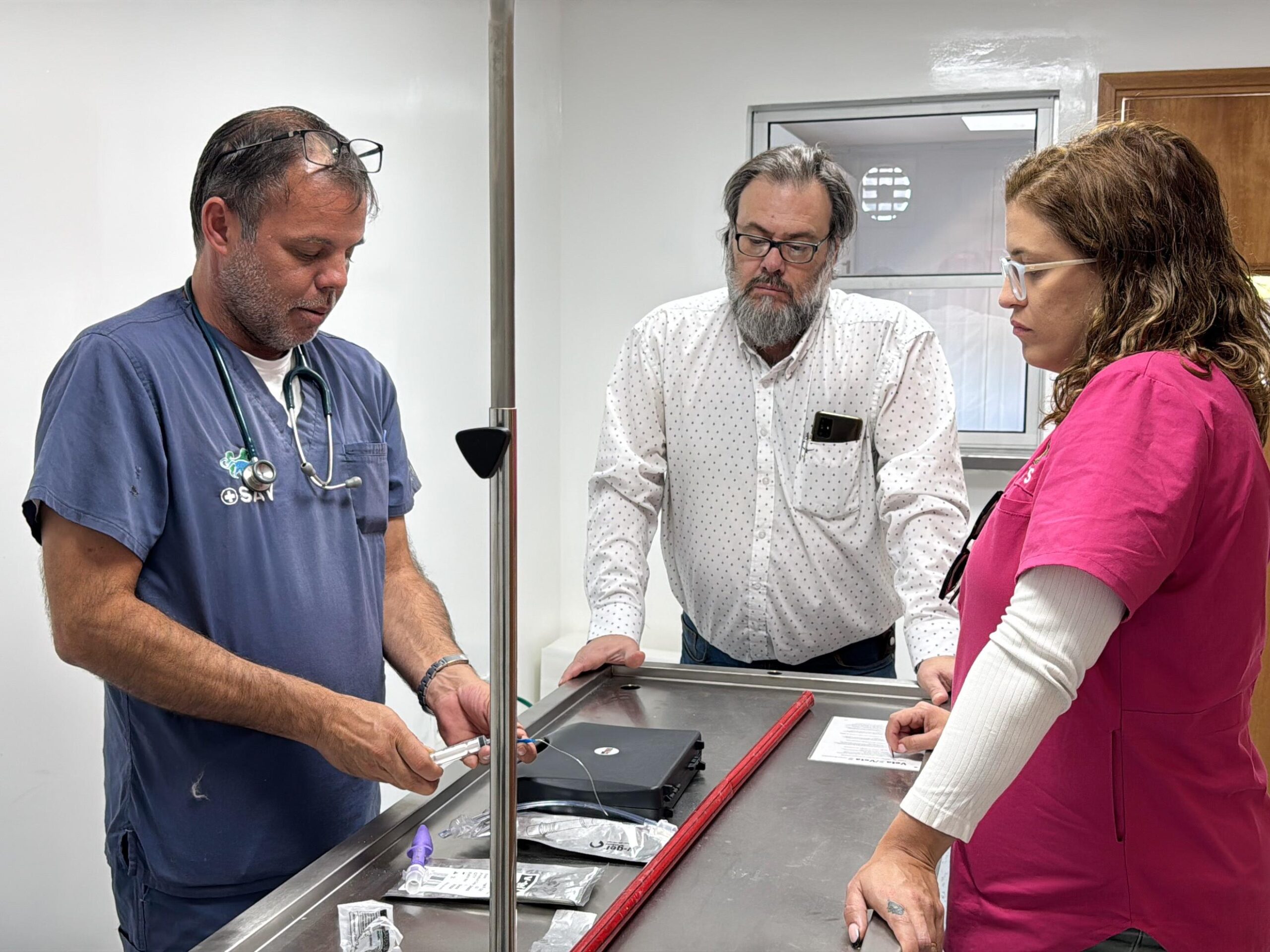 Por su parte, el Dr. Juan Pablo Cesio, secretario general interino de la Intendencia de Salto, visitó las instalaciones acompañado por la encargada de Bienestar Animal, Anahí Nieto. En la ocasión, subrayó la importancia del convenio firmado entre la Facultad de Veterinaria, la Intendencia de Salto y la Universidad de la República a través del Cenur. «Este acuerdo permitirá llevar adelante castraciones, chipeos y test de leishmaniasis, contribuyendo de manera significativa a la salud veterinaria y humana en nuestra ciudad», expresó Cesio.