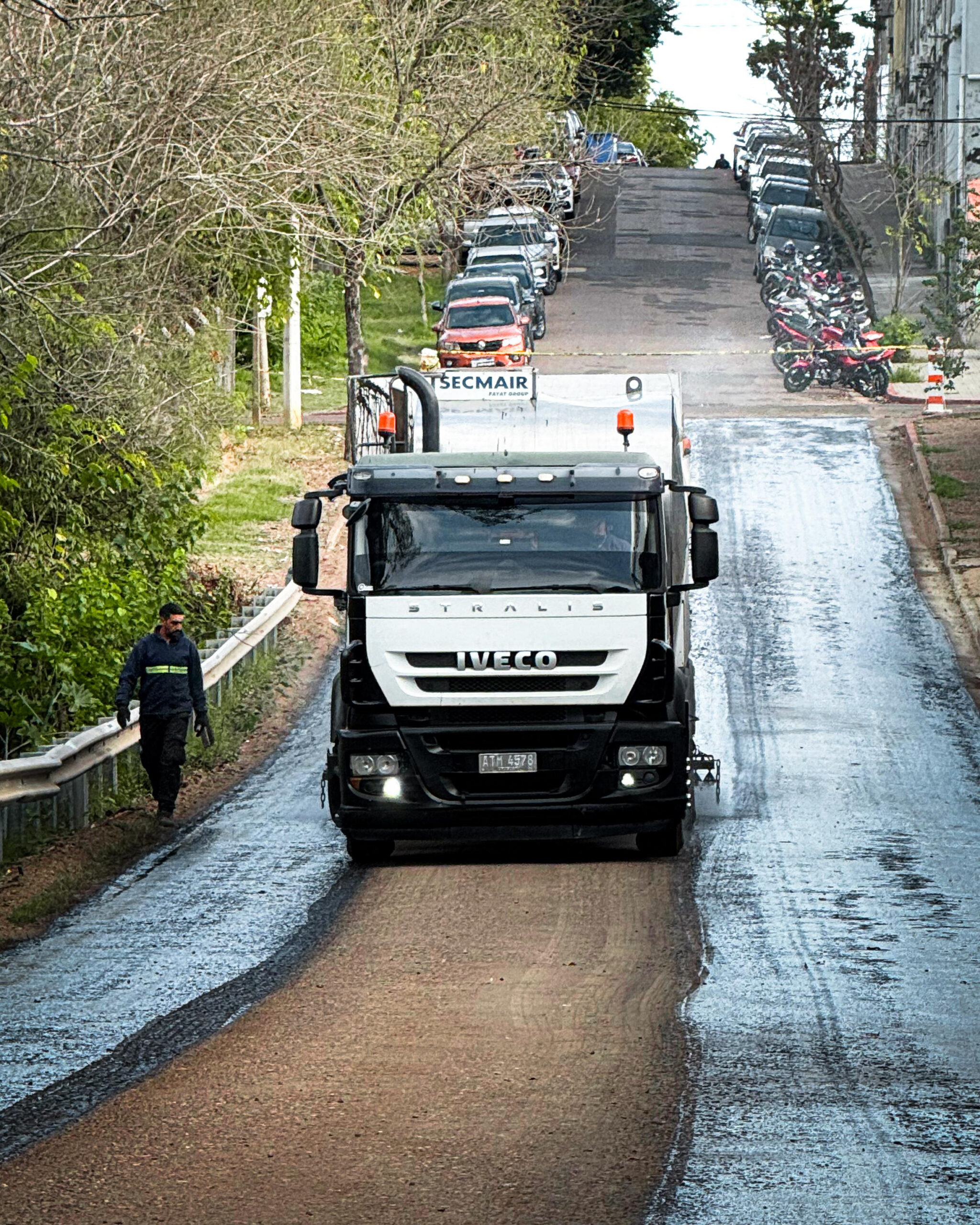 Al mismo tiempo, un equipo de obras viales de la empresa Batista inició los trabajos de aplicación de sellado y las primeras capas de bitumen en Cervantes, entre Florencio Sánchez y Lavalleja y por esta entre José Pedro Varela y Acuña de Figueroa.