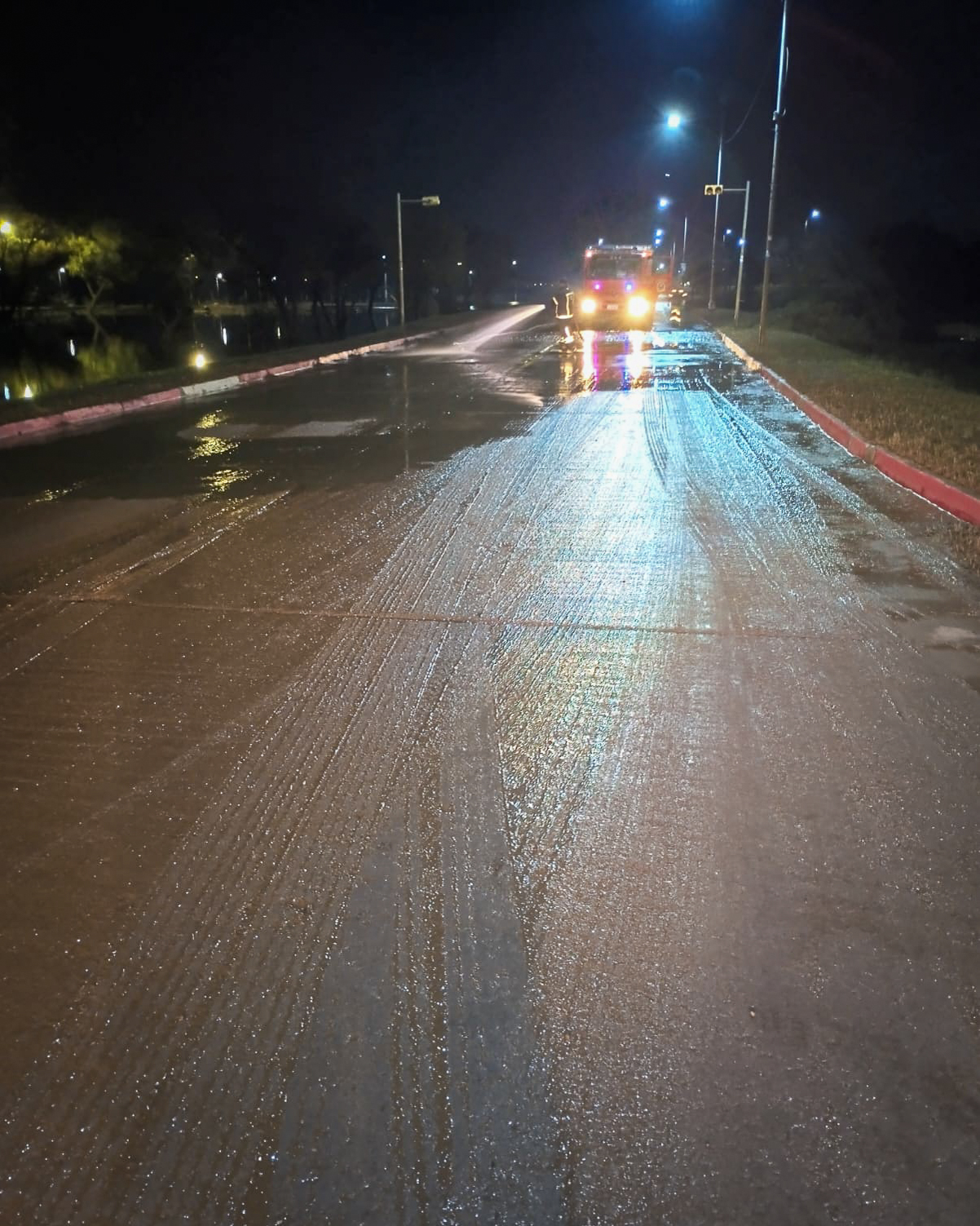 El pavimento se encuentra altamente resbaladizo debido a estas condiciones, por lo que se hace un llamado a todos los conductores, especialmente a los motociclistas, a circular con extrema precaución en la zona afectada.