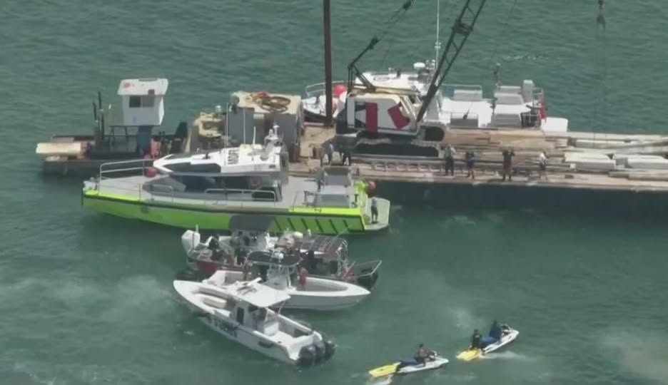 Imágenes difundidas por medios locales muestran a los socorristas, algunos con equipo de buceo, trabajando alrededor de la barcaza y los restos del velero, que quedó completamente sumergido en la Biscayne Bay, entre Miami y Miami Beach.