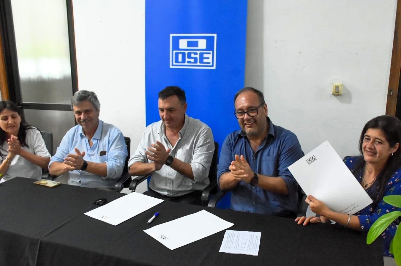 La Administración de las Obras Sanitarias del Estado (OSE), el Gobierno Departamental de Salto y representantes del barrio Los Portales firmaron un convenio para la construcción de las redes de saneamiento en la zona.